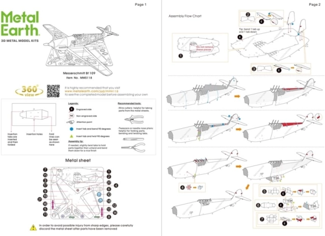 Munkafolyamat: Az egyes részeket a lemezekből kis ollóval lehet levágni. A részeket zárszerűen, kampókkal és lyukakkal lehet összekapcsolni. Ajánlott szerszámok, amelyek nincsenek a csomagban: kis vékony fogók a kampók hajlításához és az összes rész összekapcsolásához egy valósághű modell kialakítása érdekében.