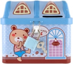 Ez a házikó alakú fém persely ideális az első lépésekhez a pénz helyes kezelésében. A kulccsal zárható megoldás biztonságban tartja a megtakarított forintokat, a felső bedobónyílás pedig megkönnyíti a rendszeres takarékoskodást. A színes illusztrációk és a játékos dizájn motiválják a gyerekeket a napi aprópénz gyűjtésére.