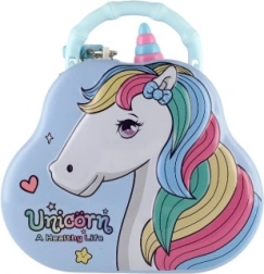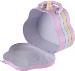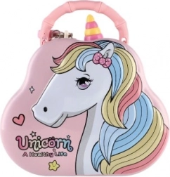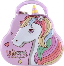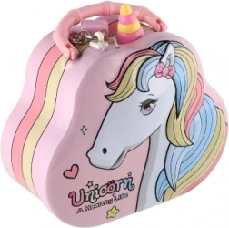Gyerekeknek szánt bádogpersely kézitáska formában, egyszarvú mintával, amely segít megtanítani a takarékosságot és a számolást. Biztonságos zárral, érmebedobó nyílással és strapabíró fém kivitelben készül, varázslatos pasztell dizájnnal, amit a gyerekek imádni fognak.