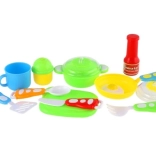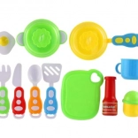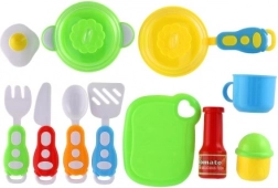 Fejleszd a gyerekek fantáziáját ezzel a színes 13 darabos gyerek étkészlettel, amely mindent kínál a valósághű főzős szerepjátékhoz. Találsz benne serpenyőt és fedeles lábast, vágódeszkát, evőeszközöket, poharat/bögrét, tükörtojást, „paradicsomszószt” és sóstartót. Ideális 3 éves kortól – kreatív, biztonságos és fejlesztő játékhoz.