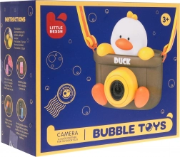 Játékos kacsa alakú buborékfényképezőgép ideális 3 éves kortól. Élvezze a hosszú órákon át tartó szórakozást a könnyű használattal és a praktikus szíjnak köszönhetően gondtalan hordozással.