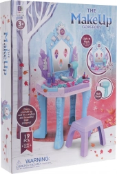 A készlet része a szék, ékszerek és kozmetikai kiegészítők – mind biztonságosak és a gyerekkezekhez igazítva. A pipereasztal elülső és oldalsó rekeszei rendben tartják az összes kincset.