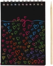 A gyerekek végtelenül szórakozhatnak színes minták készítésével a mellékelt kaparós tollnak köszönhetően.