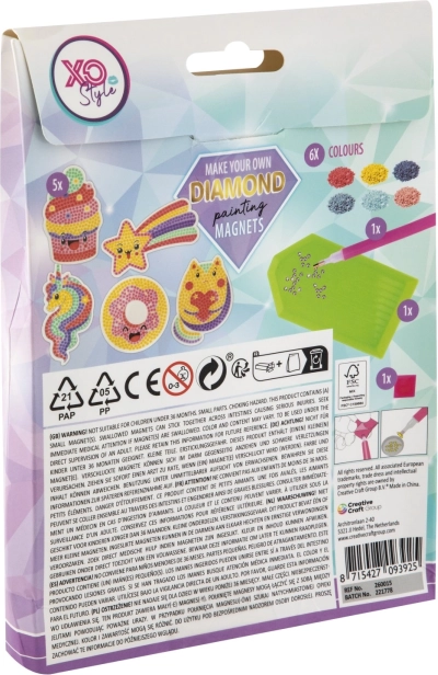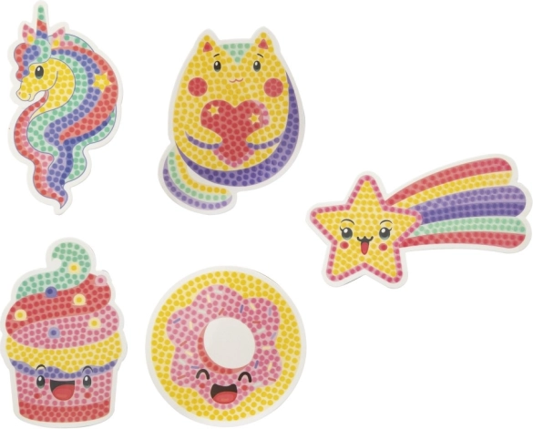 Ez a kreatív készlet a „diamond painting” kedvelt technikáját ötvözi egy praktikus, otthoni dekorációval. A mintát követve apró kövecskéket illesztesz egymás mellé, és pillanatok alatt vidám motívumokkal díszített, ragyogó mágnesek születnek, amelyek bármelyik helyet felragyogtatják, ahová felteszed.