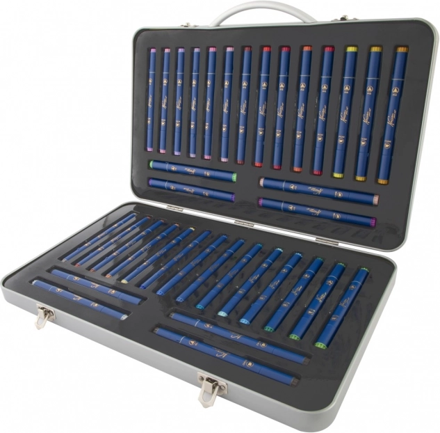 Ez az univerzális, kétvégű filctoll-készlet kiváló választás illusztrációhoz, vázlatkészítéshez és betűrajzhoz. Minden filc két oldalt kínál a különböző vonalstílusokhoz, így könnyedén válthat a részletgazdag húzások és a nagyobb felületek kitöltése között. A fémbőrönd védi a tartalmat, rendet tart és megkönnyíti a szállítást.