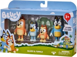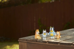 Négy kedvelt szereplő a BLUEY sorozatból együtt – készen a jelenetek újrajátszására és új történetek kitalálására.