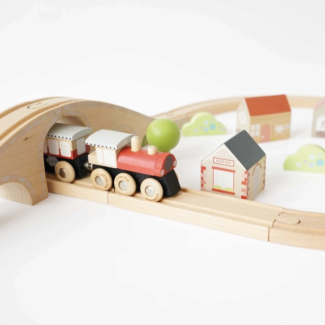 Ez a vasútkészlet tökéletes eszköz a kisgyermekek kreatív játékának ösztönzésére. Magas minőségű, FSC tanúsítvánnyal rendelkező fából készült, ami biztosítja, hogy környezetbarát. A készlet tartalmaz:<>