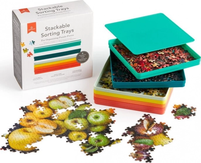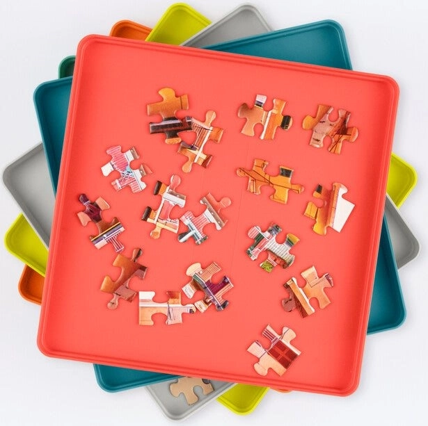 Élvezze a kirakózást tökéletesen rendezett munkafelülettel. A hat színes tálka lehetővé teszi a darabok gyors szétválogatását alak, szín vagy perem szerint. A tálkák könnyen egymásra rakhatók, a felső fedéllel lefedhetők és a darabokkal együtt biztonságosan eltehetők, így semmi sem szóródik ki, és helyet takarít meg.