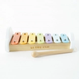 Fedezd fel a zene varázsát a LE TOY VAN gyerek xilofonjával finom, szivárványos színekben. Ez a minőségi, fa hangszer FSC-tanúsított fából készült ütővel fejleszti a hallást, a ritmusérzéket és a finommotorikát. Vízbázisú, nem toxikus festékkel van festve, és úgy tervezték, hogy bírja a mindennapos használatot.
