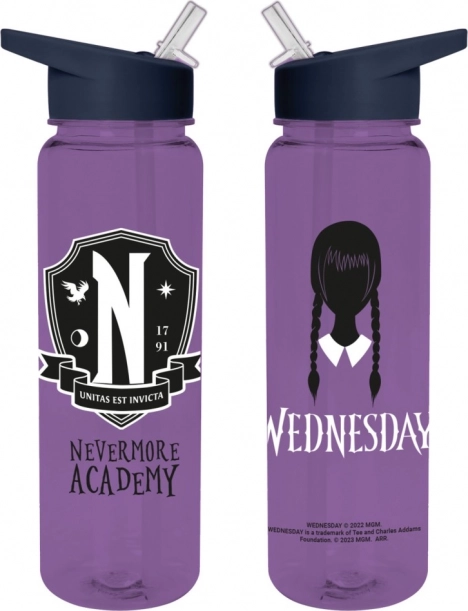 Műanyag palack licencelt dizájnnal a népszerű Wednesday sorozat ihlette, 700 ml-es űrtartalommal minden rajongónak. Stílusos és praktikus választás a mindennapi ivásra.<\div>