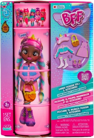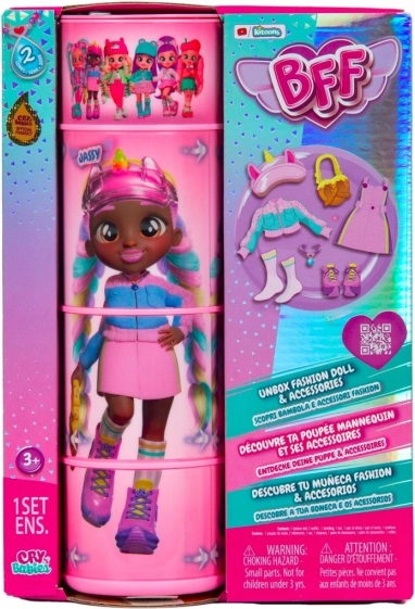 Ez további 6 Cry Babies Magic Tears baba, akik felnőttek és most már tinik! Ella, Lala, Daisy, Bruny, Hannah és Jassy! Tinik lettek, és együtt élik át a legkülönfélébb kalandokat. Mindegyikük divatos öltözéket visel, hosszú, formázásra ideális nejlon hajuk van, üveg szemeik és mozgatható testrészeik! Bontsd ki a BFF babád gardróbját, és fedezz fel több mint 9 meglepetést!