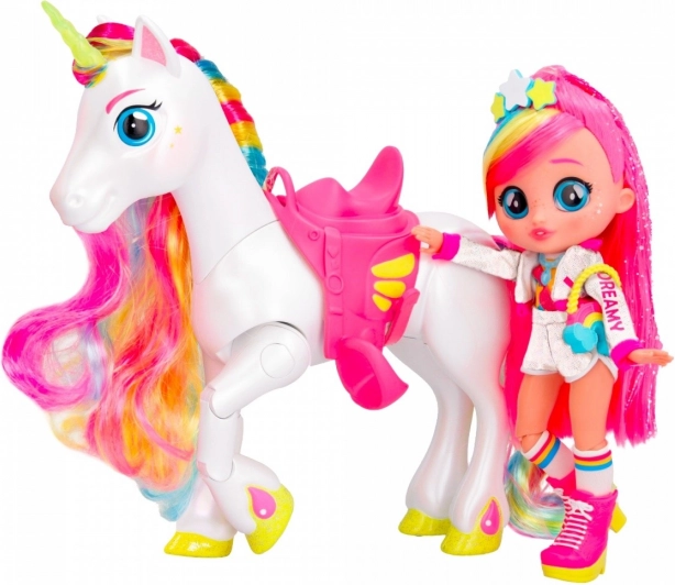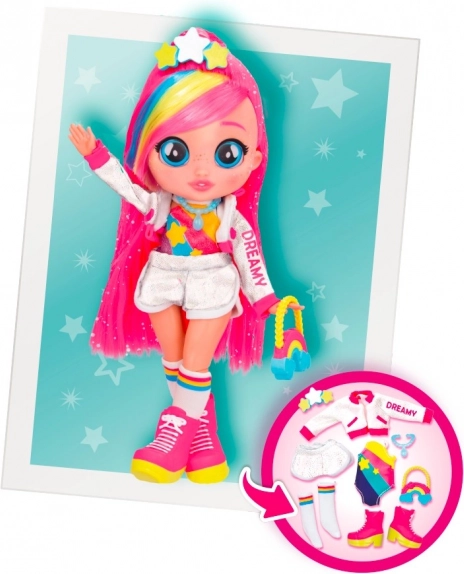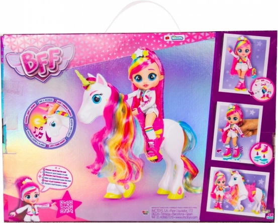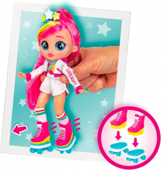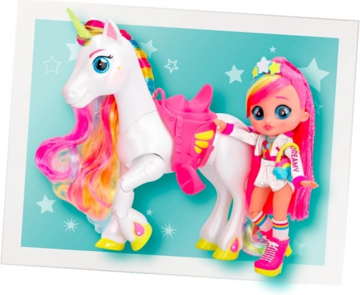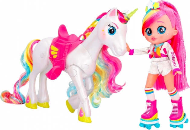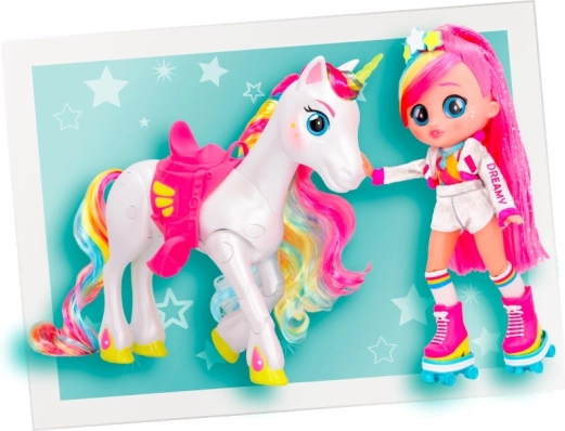 A BFF Dreamy baba és egyszarvúja, Rym még szórakoztatóbbá teszi a játékot. Rym szarva világít és hangokat ad ki, amikor megnyomod a fejét. Ez egy varázslatos pillanat, és újra meg újra átélni remek szórakozás, különösen azért, mert Rym hatféle hangot tud kiadni. Dreamy és Rym mókás pózokat tudnak felvenni. Dreamy hosszú, színes, fényes hajú, üveg szemei vannak, és az öltözéke műkorcsolyázóra emlékeztet. A készlethez kerekek is tartoznak, hogy Dreamy eljátszhassa a görkorcsolyázást, valamint egy nyereg, hogy Dreamy Rym hátán is lovagolhasson. Élj át egyedülálló kalandokat Dreamyvel és Rymmel!