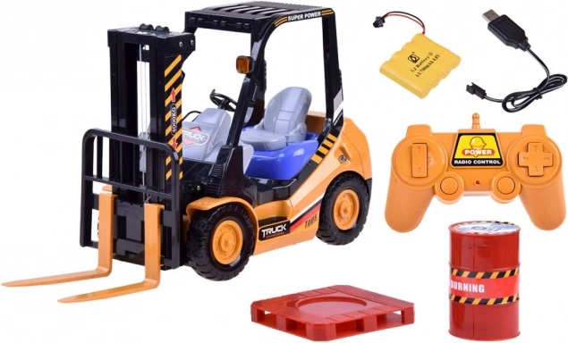 Szórakoztató és teljesen működőképes, távirányítású targonca gyerekeknek. Ideális a kis raktárosnak, aki valósághű élményt szeretne a villástargonca irányításából.