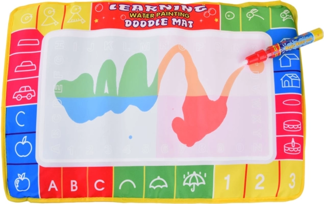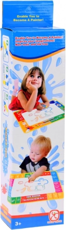Ez a színes vízzel rajzolható szőnyeg tiszta szórakozássá varázsolja a rajzolást. Csak töltsd meg a tollat vízzel, és rajzolj, ami csak eszedbe jut – a kezek, az asztal és a falak sem lesznek piszkosak. Amint a rajz megszárad, eltűnik, és a gyerekek újra és újra alkothatnak. A szőnyeg könnyű, könnyen feltekerhető, és színes díszdobozos csomagolásának köszönhetően utazáshoz vagy ajándéknak is tökéletes.