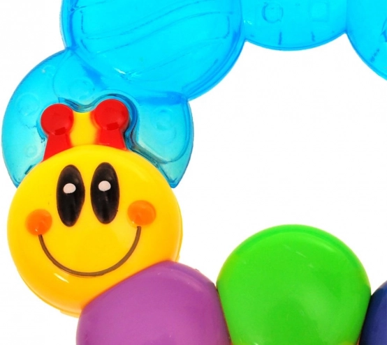 Színes, hernyó alakú rágóka babáknak, amely enyhülést nyújt a fogzás során és támogatja a érzékszervi fejlődést. Az ergonomikus forma könnyen tartható a kis kezekben, a textúrált felület finoman masszírozza az ínyt, és hűtés után nyugtató hatást biztosít.