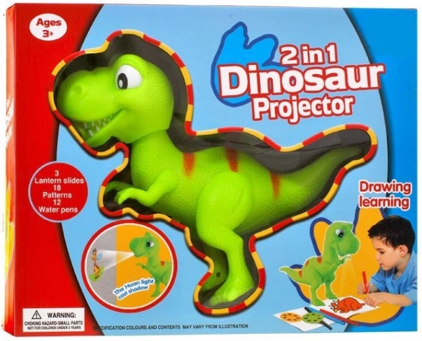 A Dinoszaurusz T-rex projektor három mintakészletet kínál a táblára vagy bármely sík felületre történő kivetítéshez. Az állítható dőlésszögnek köszönhetően papírra rajzoláshoz és falra vetítéshez is használható. A dinoszaurusz gondosan kidolgozott, ami tartós szórakozást biztosít.