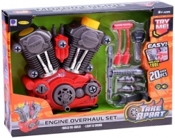A csomag része egy gazdag szerszámkészlet, amellyel a motort újra és újra szét lehet szedni és össze lehet rakni. Minden tartós műanyagból készült, hogy a játék sokáig bírja, és a kis kezek számára is könnyen kezelhető legyen. Remek ajándékötlet, amely támogatja a finommotorikát, a türelmet és a kreatív gondolkodást.