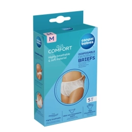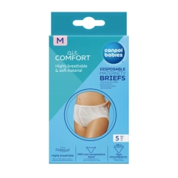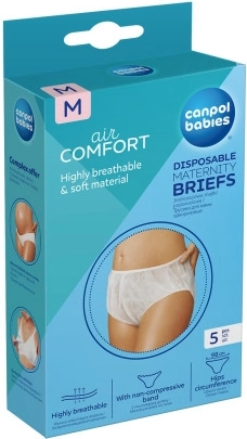 Az eldobható higiéniai bugyik a szülés utáni időszakban való használatra készültek. Puha, finom szálakból készülnek, amelyek nem irritálják a bőrt és jól szellőznek. A deréknál és a combkivágásoknál finom gumírozással vannak ellátva. Higiéniai okokból minden darab külön csomagolt. Három méretben kaphatók: M/L, L, L/XL (a méret a csomagoláson van feltüntetve). Használati útmutató: Használat után a bugyit csomagolja be, és dobja a szemetesbe. Figyelmeztetés! A termék nem játék. Gyermekektől elzárva tartandó. A bugyik megfelelnek a következő követelményeknek: Az Európai Parlament és a Tanács 2001/95/EK irányelve az általános termékbiztonságról.