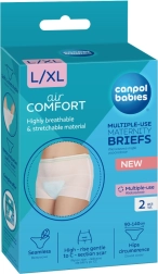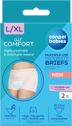 A CANPOL BABIES újrahasználható, finom hálós szülés utáni bugyija légáteresztő, kényelmes, és biztosan rögzíti a betétet. A magas derékrésznek köszönhetően kíméletes a császármetszés utáni heghez, rugalmas, varrás nélküli kialakítása pedig tökéletesen alkalmazkodik az alkatodhoz. A csomagban 2 darab található L/XL méretben (csípő: 90–140 cm).