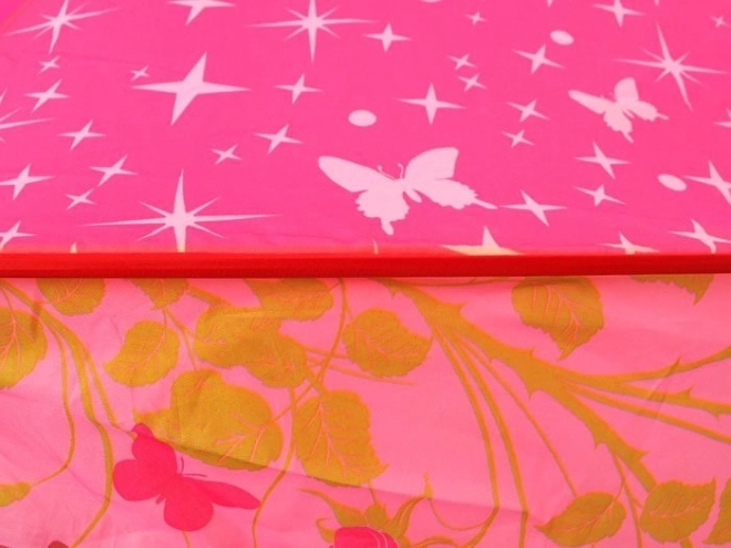 Vidám, lányos sátor rózsaszínben, pillangókkal és virágokkal, amely bármely szobát a fantázia birodalmává varázsol. Átgondolt felépítésének köszönhetően pillanatok alatt felállítható, a biztonságos játék pedig természetes. A sátor könnyű, hordozható, és játék után egyszerűen elcsomagolható a mellékelt táskába.