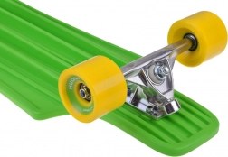 A rendkívül tartós polipropilén deck könnyű és erős, a csúszásgátló textúra és a grip szalagok pedig biztos tartást adnak menet közben. A 7"-es alumínium truckok, a nagy PU kerekek 70 × 51 mm és az ABEC 7 csapágyak egyenletes gördülést, jó rezgéscsillapítást és precíz kanyarodást biztosítanak.