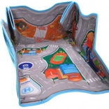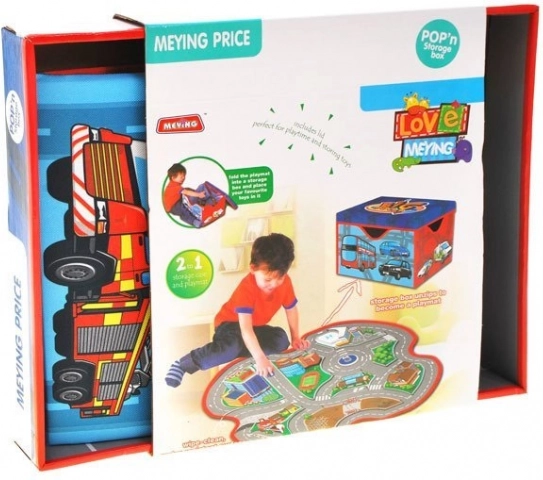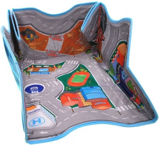 Okos megoldás gyerekszobába: szétnyitva tágas város mintás játszószőnyeget kapsz, összecsukva pedig stabil dobozt a kisautó-gyűjtemény és egyéb apró játékok számára. A kétoldalas textil anyag kellemes tapintású, a megerősített oldalfalak pedig tartják a formát.