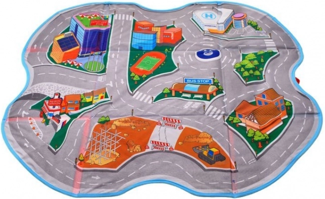 Praktikus 2 az 1-ben szett, amely egyesíti a játék tárolódobozt és a városi utcás textil játszószőnyeget. A gyerekek kisautóikkal járhatják a utakat, körforgalmakat és kereszteződéseket, játék után pedig mindent egyszerűen elpakolhatsz a masszív, tépőzáras dobozba.