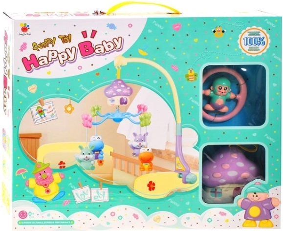 A zenélő szerkezet automatikusan forgatja a körhintát és nyugtató dallamokat játszik, amelyek megnyugtatják a baba érzékeit.