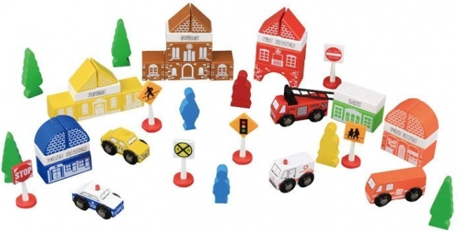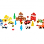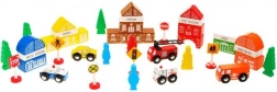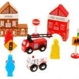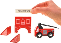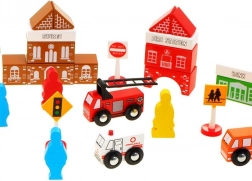 Fa építőkészlet Városka Tűzoltóállomás gondosan készült, részletekre odafigyelve. A színes darabok felkeltik a figyelmet és ösztönöznek a játékra. Ezek a fa építőkockák tartósak és hosszú ideig szolgálják majd használójukat. Természetes anyagokból készültek, teljesen ökológiaiak.