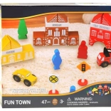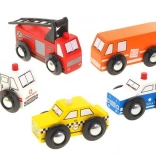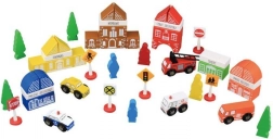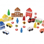 A készlet tartalmaz mentőautót, taxit, rendőr autót és különféle figurákat a játék gazdagításához.