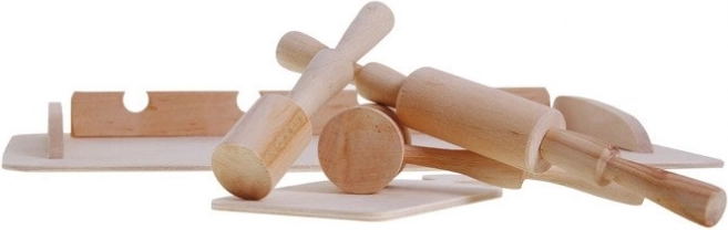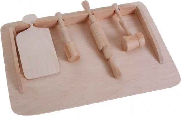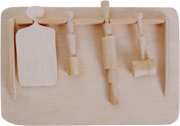 A készlet teljes egészében fából készült, a szükséges kiegészítőkkel együtt.