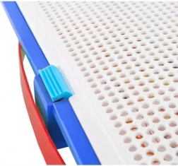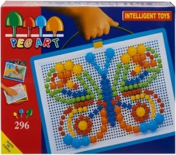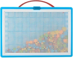 Ez a kreatív gombmozaik színes alkotás világát hozza el a gyerekeknek. A színes pöckökből könnyedén készülhetnek pillangók, virágok vagy egyedi, saját minták. A praktikus bőrönd megkönnyíti az összes elem szállítását és tárolását, így semmi nem vész el, és a játék bármikor, bárhol elkezdhető.