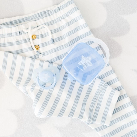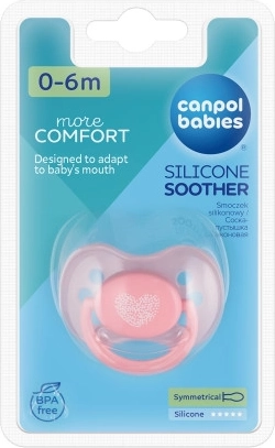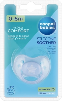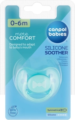 A PASTELS szilikon cumi átlátszó szilikonból készült, teljesen íz- és szagmentes. A cumi BPA-mentes. A csomagban 1 darab található. A Canpol babies cumik előnyei: jól szellőznek; erről könnyen meggyőződhet, ha megnyomja a cumirészt (ne becsülje alá ezt a tulajdonságot, a cumi rossz szellőzése a gyermek szájpadlásának és harapásának deformációjához vezethet); a pajzson lévő szellőzőnyílások lehetővé teszik a levegő szabad áramlását, elvezetik a nyálat, és így megelőzik a száj körüli bőr irritációját; a biztonsági gyűrű erősen tart, megkönnyíti a gyermek számára a kényelmes fogást, a szülőknek pedig a klipsz vagy a cumilánc rögzítését; a cumik vonzó pasztell színekben és ötletes mintákkal kaphatók. Egészítse ki a cumit azonos mintájú cumitartó tokkal. Használati útmutató: Az első használat előtt higiéniai okokból sterilizálja a cumit forrásban lévő vízben körülbelül 5 percig. Lehűlés után nyomja ki a cumiból a visszamaradt vizet. Minden használat előtt alaposan mossa el a cumit meleg vízben. Ne használjon antibakteriális vagy vegyi tisztítószereket. A tisztítószerek túlzott használata károsíthatja a műanyag részeket. Soha ne mártsa a cumit édes anyagokba vagy gyógyszerekbe – ezzel a gyermeket a fogzománc károsodásának veszélyének teszi ki. A cumit legfeljebb 1–2 hónapig használja, majd higiéniai és biztonsági okokból cserélje újra. Ha a cumi a gyermek szájába csúszik, NE ESSEN PÁNIKBA – a cumit úgy tervezték, hogy a gyermek ne tudja lenyelni, és ilyen esetekben biztonságosan kiveheti a szájból. A cumit a lehető legóvatosabban távolítsa el. A cumit tiszta, száraz, zárt tokban tárolja. Nem javasoljuk a cumik használatát 3 évnél idősebb gyermekeknél. Fontos! Gyermeke biztonságáért és egészségéért! Minden odaadás előtt ellenőrizze a cumi állapotát. A cumirész minőségét minden irányba történő alapos nyújtással tesztelje. Az első sérülés jeleinél a cumit azonnal dobja ki, és ne használja tovább. Csak olyan cumiklipet és -láncot használjon, amelyek megfelelnek az EN12586 szabványnak. Soha ne rögzítse a cumit különféle zsinórokhoz, cipőfűzőkhöz vagy ruhaszalagokhoz. A gyermek megfulladhat. Ne hagyja a cumit közvetlen napsütésben, hőforrás közelében vagy fertőtlenítőszerekben hosszabb ideig a javasoltnál – ez a cumirész gyengülését okozhatja. A levett védőkupakot tartsa gyermekektől elzárva – így megelőzhető a fulladás veszélye. A cumi megfelel az alábbi követelményeknek: Az Európai Parlament és a Tanács 2001/95/EC irányelve az általános termékbiztonságról; EN 1400 – 1 Babaápolási termékek – Cumik csecsemők és kisgyermekek számára – 1. rész: Általános biztonsági követelmények és termékinformációk; EN 1400 – 2 Babaápolási termékek – Cumik csecsemők és kisgyermekek számára – 2. rész: Mechanikai követelmények és vizsgálatok; EN 1400 – 3 Babaápolási termékek – Cumik csecsemők és kisgyermekek számára – 3. rész: Kémiai követelmények és vizsgálatok