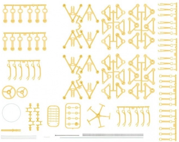Műanyag elemek egy járó szerkezet összeszereléséhez