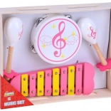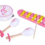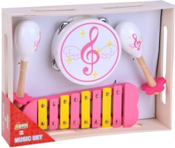 Ez a többdarabos hangszerkészlet tökéletes választás kis zenészeknek és baráti társaságoknak egyaránt. A hangszerek minőségi fából készültek, kellemes hangzásúak, és vonzó dizájnnal rendelkeznek rózsaszín és sárga árnyalatokban. A gyerekek természetes módon sajátítják el a ritmust, a koordinációt és a zenei érzéket.