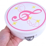 Könnyű tamburin fém csengőkkel és dobolási lehetőséggel, amely támogatja a ritmusérzéket és a kézkoordinációt.