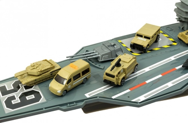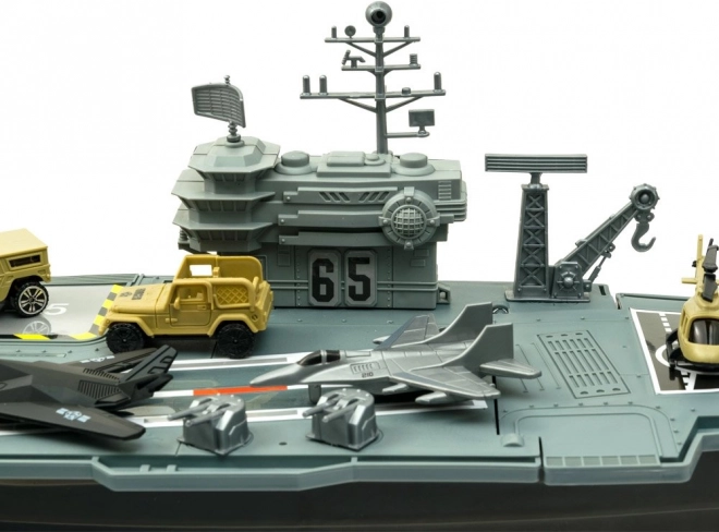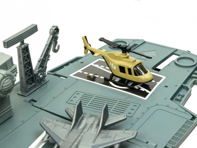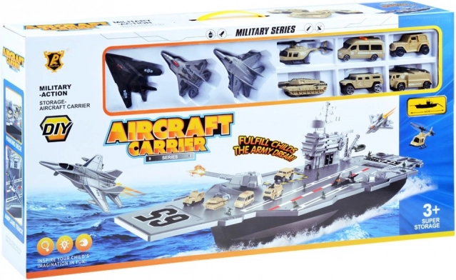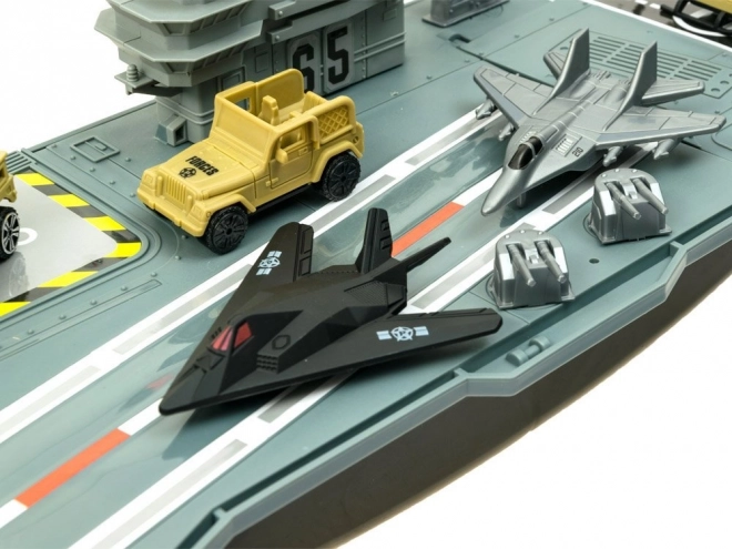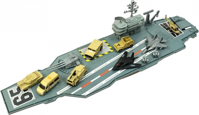 A repülőgép-hordozóhoz vadászgépek, helikopter, harckocsi, további járművek és katonai figurák tartoznak, amelyek megszámlálhatatlan játékszcenáriót és órákig tartó szórakozást biztosítanak.