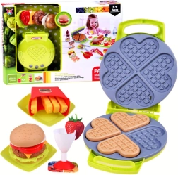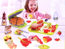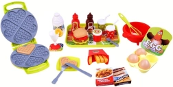 Csodálatos konyhai szett gofrival, amely lehetővé teszi minden kis szakácsnak, hogy édes gofrikat, hasábburgonyát és hamburgereket készítsen. Biztonságos műanyagból készült, ideális azoknak a gyerekeknek, akik imádnak főzős játékokat játszani.