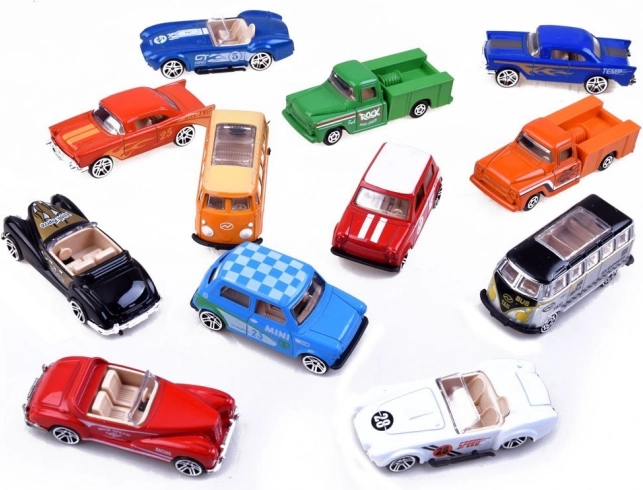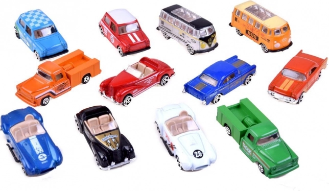 Fedezze fel a tizenkét darabból álló, 1:64 méretarányú, változatos kisautó-kollekciót, amely lenyűgöz a részletgazdag kidolgozással, tartóssággal és időtlen retro dizájnnal. A fém karosszériák (die-cast) és a masszív műanyag alvázak hosszú élettartamot és vonzó megjelenést garantálnak.