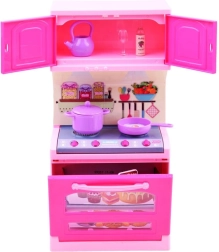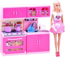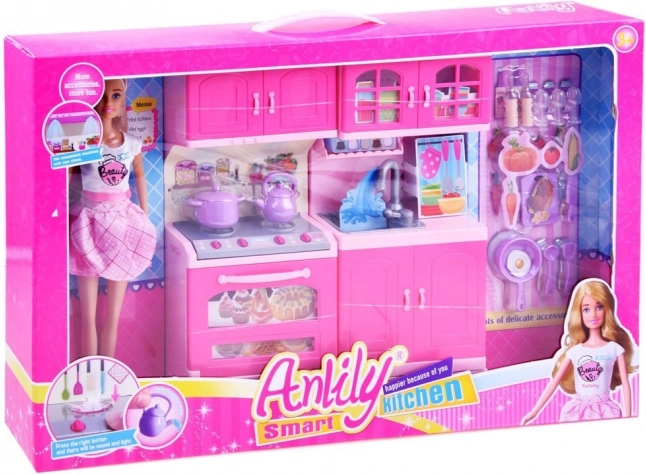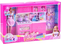 Ezzel a gyönyörű szettel a gyerekek könnyedén megalkothatják saját főzőcskéző világukat. Az ANLILY baba pasztellszínű ruhában, kötényben, valamint a részletgazdag, rózsaszín konyha sütővel, mosogatóval, szekrényekkel és tűzhellyel órákon át tartó szórakozást és valósághű főzésutánzást kínál.