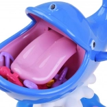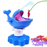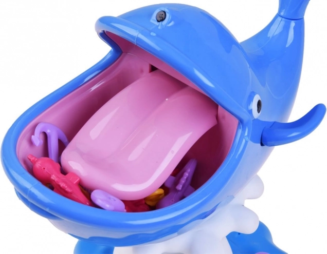 Önts vizet, helyezd a kincseket a szájba, és indulhat a játék. A stabil talapzaton álló kék bálna remekül mutat, és biztonságos a gyerekek számára.