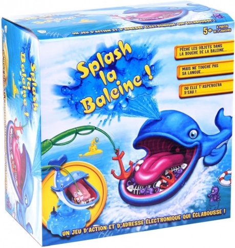 A Vizes bálna játék nagyszerű interaktív szórakozás az egész családnak. A gyerekek fejlesztik finommotorikájukat, türelmüket és a kéz–szem koordinációt, miközben versenyeznek, ki fogja ki az ankeret, mentőgyűrűket vagy halcsontvázakat a mosolygós bálna szájából. De vigyázat – a nyelv megérintése vizes spriccelést indít!