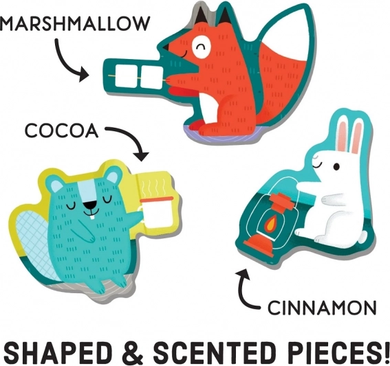 Merüljön el a tábortűznél összegyűlt erdei barátok világában. Ez az illatos puzzle nemcsak az összerakás örömét nyújtja, hanem egy szórakoztató érzékszervi elemet is – három speciális darab pillecukor, kakaó és fahéj illattal. Az élénk színeknek, a matt felületkezelésnek és a sima hátoldalnak köszönhetően a darabok kellemes tapintásúak és tökéletesen illeszkednek egymáshoz.