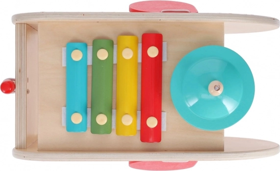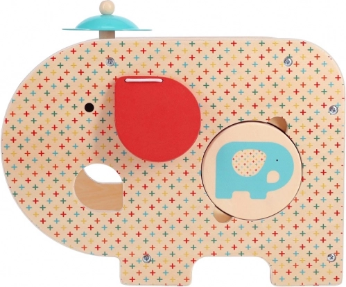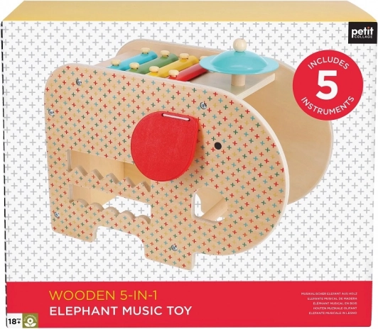 Az elefánt öt zenei eszközt kínál egyben: xilofon, dob, cintányér és mások kreatív zenei kifejezés fejlesztésére.