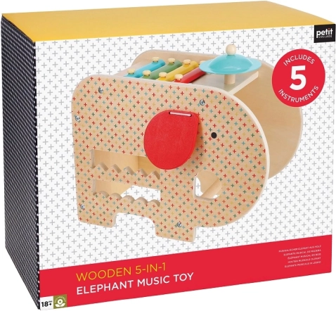 Ismertesse meg gyermekeit a ritmussal és hanggal ennek a sokoldalú fa elefántnak köszönhetően. Öt különböző játék lehetőséget tartalmaz, mint például a játék xilofonon, dobon, cintányéron és másokon.