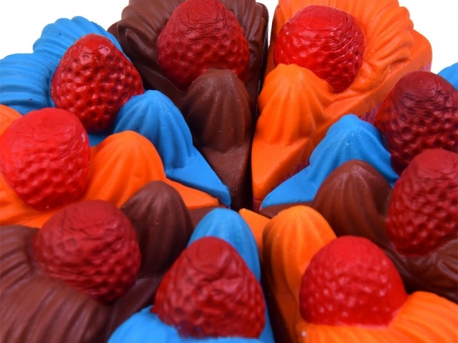 Olyan részletek, mint a tetején lévő eper és a „krém” rétegek, vonzó dekorációvá és remek ajándékká teszik a játékot.