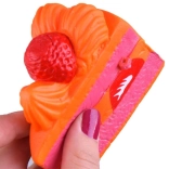 A squishy tortaszelet vidám antistressz eszköz, amelyet kedvedre nyomkodhatsz, gyúrhatsz és szoríthatsz, valahányszor feszültséget szeretnél oldani. A puha, lassan visszaálló habnak köszönhetően a nyomkodás maximálisan kielégítő, és a termék mindig visszatér eredeti formájába.