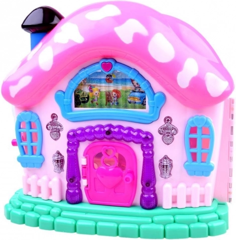 Az egyedi, gomba alakú dizájn rózsaszín tetővel és fehér pöttyökkel varázslatos légkört teremt a játékhoz.