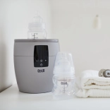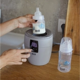 LOVI 4 az 1-ben cumisüveg-melegítő. Gyors és egyenletes melegítés. Intuitív vezérlés áttekinthető kijelzőn. 4 funkció három módban: BOTTLE mód – folyadékok melegítése üvegben, tasakban tárolt ételek kiolvasztása. A kívánt hőmérsékletet akár 10 órán át tartja. HOT mód – gyors ételmelegítés + üvegek és tartozékok sterilizálása. DINNER mód – a kívánt hőmérsékletet akár 3 órán át tartja. Biztonságos – automatikus kikapcsolás vízhiány esetén HOT módban. A csomagban vízadagoló mérőpohár. A LOVI melegítő ideális és biztonságos módja az ételek melegítésének. Termosztátot tartalmaz, amely nagyon hosszú ideig tartja a beállított hőmérsékletet. Védi az ételt a túlmelegedéstől és az értékes vitaminok és ásványi anyagok elvesztésétől. A szupergyors LOVI melegítő automatikusan beállítja a melegítési időt, függetlenül attól, hogy az étel hűtött, fagyasztott vagy szobahőmérsékletű. A LOVI melegítő az alábbi típusú üvegekben vagy befőttesüvegekben történő melegítésre szolgál: • LOVI üvegekben és a legtöbb széles nyakú üvegben • klasszikus üvegekben • kész bébiételek üvegeiben. A készülékbe helyezhető üveg maximális szélessége 6,5 cm. 4 funkció 1-ben – melegít, hőmérsékletet tart, kiolvaszt és gőzzel sterilizál. Gyors – az ételt már 2 perc alatt felmelegíti, ami a piacon elérhető melegítők többsége elé helyezi. *80 ml tej/víz 21°C kezdeti hőmérséklettel. Univerzális – kompatibilis a piacon kapható legtöbb cumisüveggel. Biztonságos – automatikus kikapcsolás vízhiány esetén HOT módban. A melegítő megfelel az alábbi előírásoknak: Az Európai Parlament és a Tanács 2006/95/EK irányelve az egyes feszültséghatárokon belüli használatra szánt villamossági berendezések tagállami jogszabályainak összehangolásáról. Az Európai Parlament és a Tanács 2011/65/EU irányelve az egyes veszélyes anyagok villamos és elektronikus berendezésekben való alkalmazásának korlátozásáról (RoHS). Az Európai Parlament és a Tanács 2004/108/EK irányelve a tagállamok elektromágneses összeférhetőségre vonatkozó jogszabályainak közelítéséről (EMC). Figyelmeztetés: A termék megfelelő és szakszerű karbantartására vonatkozó pontos utasításokat a használati útmutató tartalmazza.