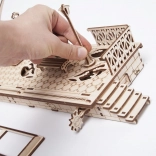 A UGEARS mechanikus 3D kirakó a hagyományos anyagot okos mechanikával ötvözi. Összeállítás után részletgazdag vasútállomás-peron modellt kap lépcsővel, paddal, órával és korláttal. A precíz kivágásnak köszönhetően az elemek pontosan illeszkednek, és a modell simán mozog.